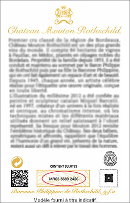 Château Mouton Rothschild may not be held liable for any use of information received for whatever purpose. The company is not liable for any use that might be made of the codes tested on this site for commercial, wrongful or promotional purposes.