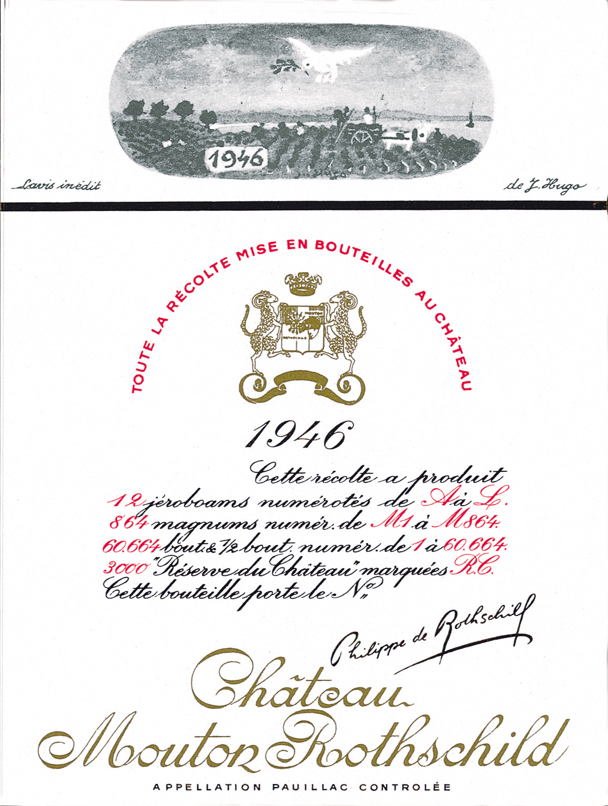 For the 1946 label, Jean Hugo used the story of the Flood: the dove returning to the Ark, a symbol of the first year of peace.