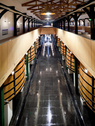 车间分为上下两层,由优雅的金属柱连接,体现了钢铁与橡木的完美结合,忠实于木桐堡使用橡木发酵桶的传统。